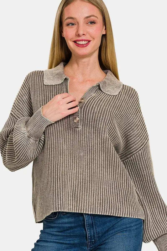 Add a touch of casual sophistication to your wardrobe with this Washed Half Button Long Sleeve Sweater. The half button design gives it a unique and stylish look that sets it apart from your typical sweater. Crafted from a soft washed fabric, this sweater...- $48.94 USD