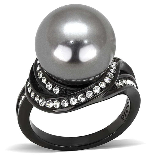 TK3052 - IP Black(Ion Plating) Stainless Steel Ring with Synthetic Pearl in Gray