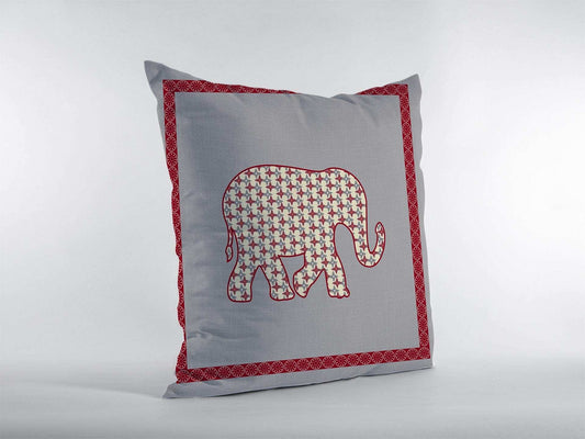 16” Red Gray Elephant Zippered Suede Throw Pillow