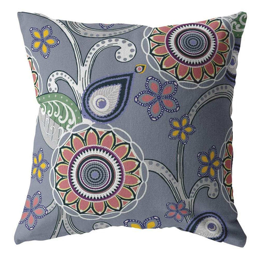 16” Gray Pink Floral Suede Zippered Throw Pillow
