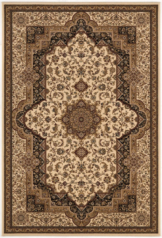 This 5-foot x 8-foot beige and black medallion power loom area rug, is a great way to add warmth to a room. This rectangle shaped rug features a medallion design in beige and black to give it visual interest. A classic shape marries with...- $377.82 USD