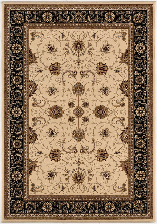 7' X 9' Black and Ivory Oriental Power Loom Area Rug