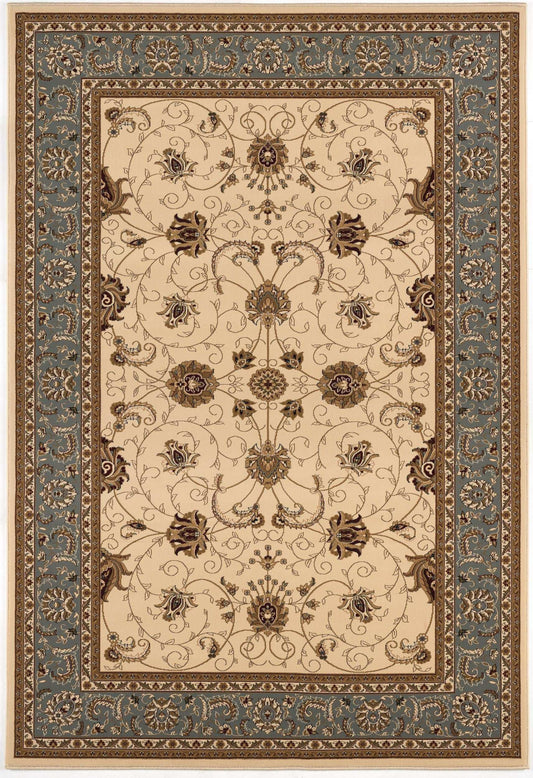 Add some artistry to your room with this 5-foot x 8-foot blue and ivory oriental power loom area rug. This rectangle shaped rug features a oriental design in blue and ivory to give it visual interest. A classic shape marries with good looking design...- $377.82 USD