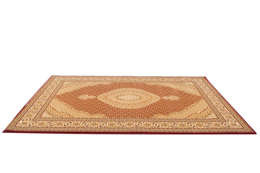 7' X 9' Red and Beige Oriental Power Loom Area Rug
