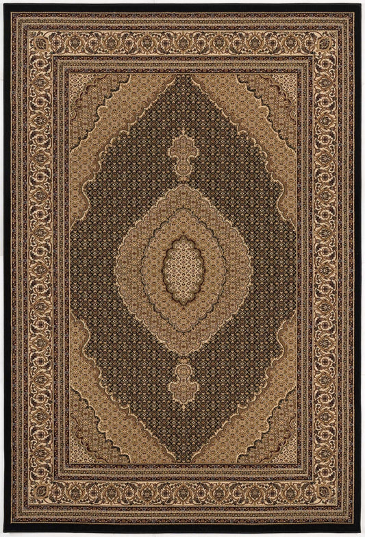Add some artistry to your room with this 7-foot x 9-foot beige and black medallion power loom area rug. This rectangle shaped rug features a medallion design in beige and black to give it visual interest. A classic shape marries with good looking design...- $589.58 USD