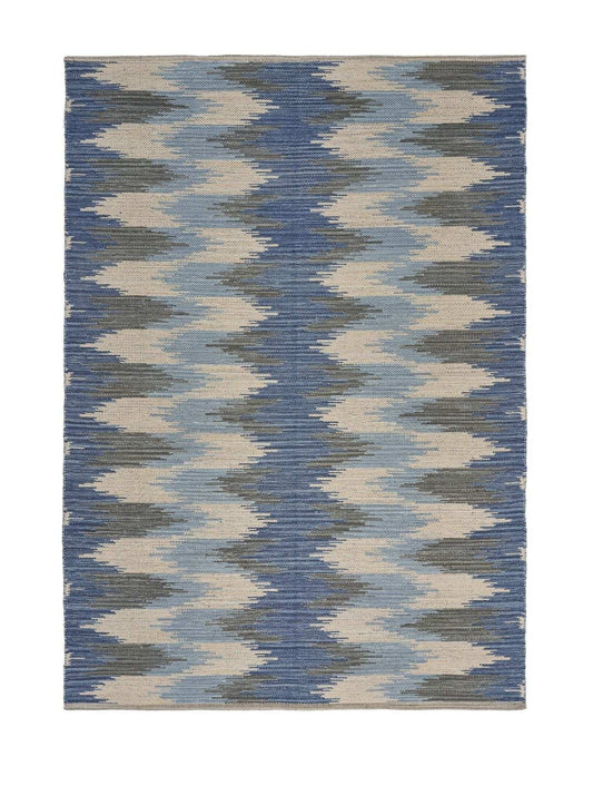 5' X 7' Blue and Cream Ikat Pattern Area Rug