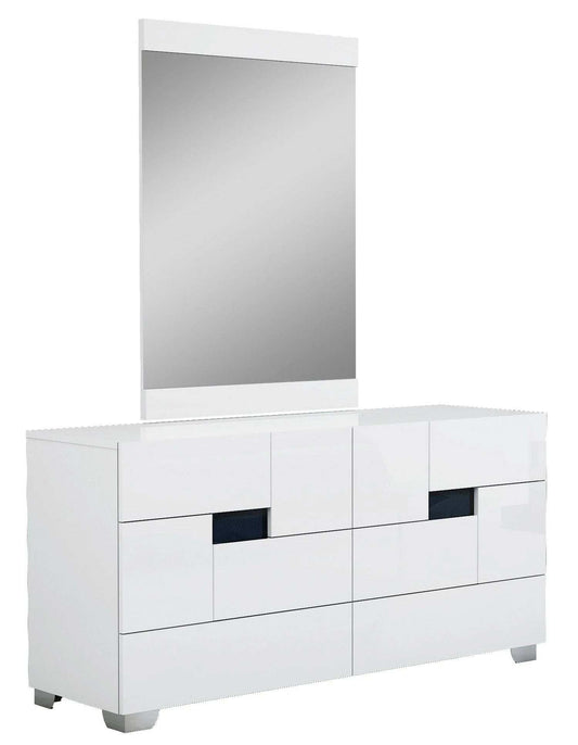 Enhance the elegance of your bedroom with this modern four-piece bedroom set featuring a sleek white solid wood design. The set includes a bed, nightstand, dresser, and dresser mirror, providing a cohesive and stylish look to your space. The majority color of the set...- $5,241.96 USD