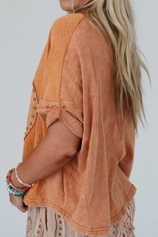 Stud Heart Patch Round Neck Short Sleeve T-Shirt