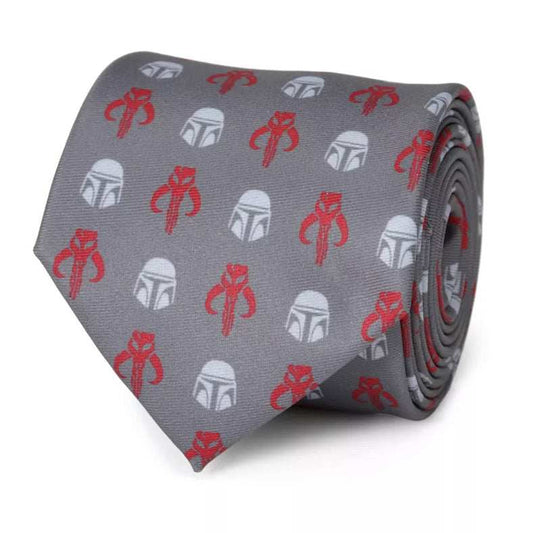 Star Wars Mandalorian and Mythosaur Red and Gray Tie