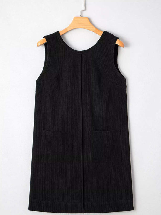 Corduroy Sleeveless Mini Dress with Patched Pockets