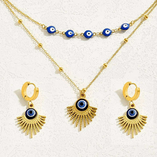18K Stainless Steel Beaded Multi-Layered Necklace Bracelet Earrings Jewelry Set