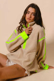 Stay cozy and stylish in the Contrast Edge Half Zip Up Sherpa Jacket. This jacket boasts a trendy half-zip design and eye-catching contrast edge detailing. Crafted from soft sherpa material, it provides warmth and comfort during the colder seasons. With its high collar, this jacket offers added protection against chilly winds. Elevate your winter wardrobe with this versatile and chic outerwear piece.