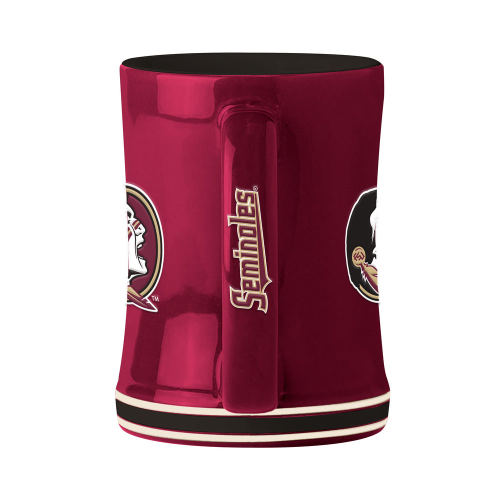 Enjoy this 14 oz. concave ceramic mug featuring your favorite team's colors. A 3-D raised logo adds extra detail, along with a stripe around the bottom. Team name appears on the handle.