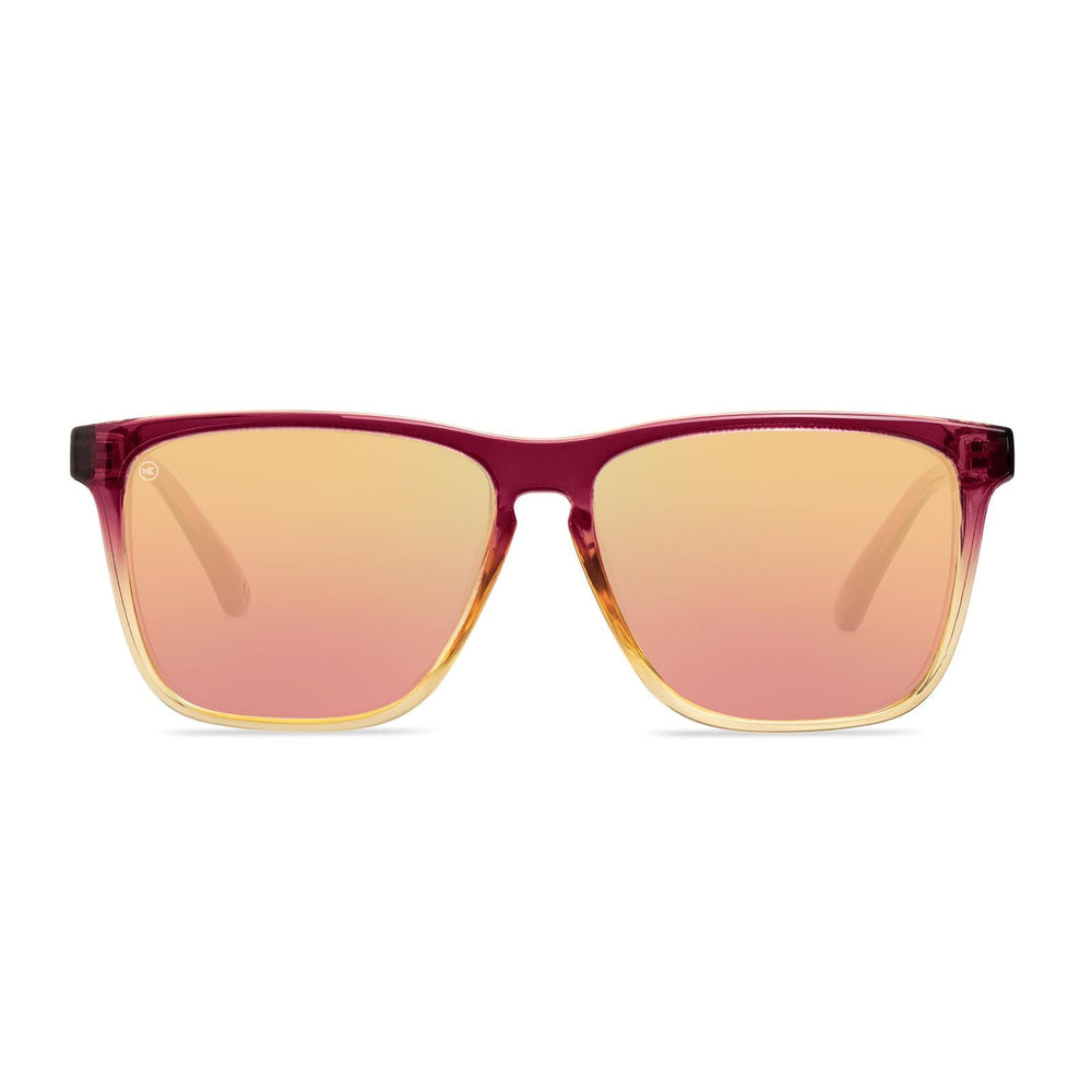 Stirring controversy at every turn, our Hot Take Fast Lanes are always ready to keep things interesting. You won’t hesitate to make your feelings known in the face of controversy thanks to transparent mulberry frames that fade into clear beige bottoms. UV400 protection and impact resistance on rose gold lenses adds even more confidence to the equation, and rose gold ‘K’ detailing lets everyone know where you got all that attitude. Riling up your audience has never looked so stylish.