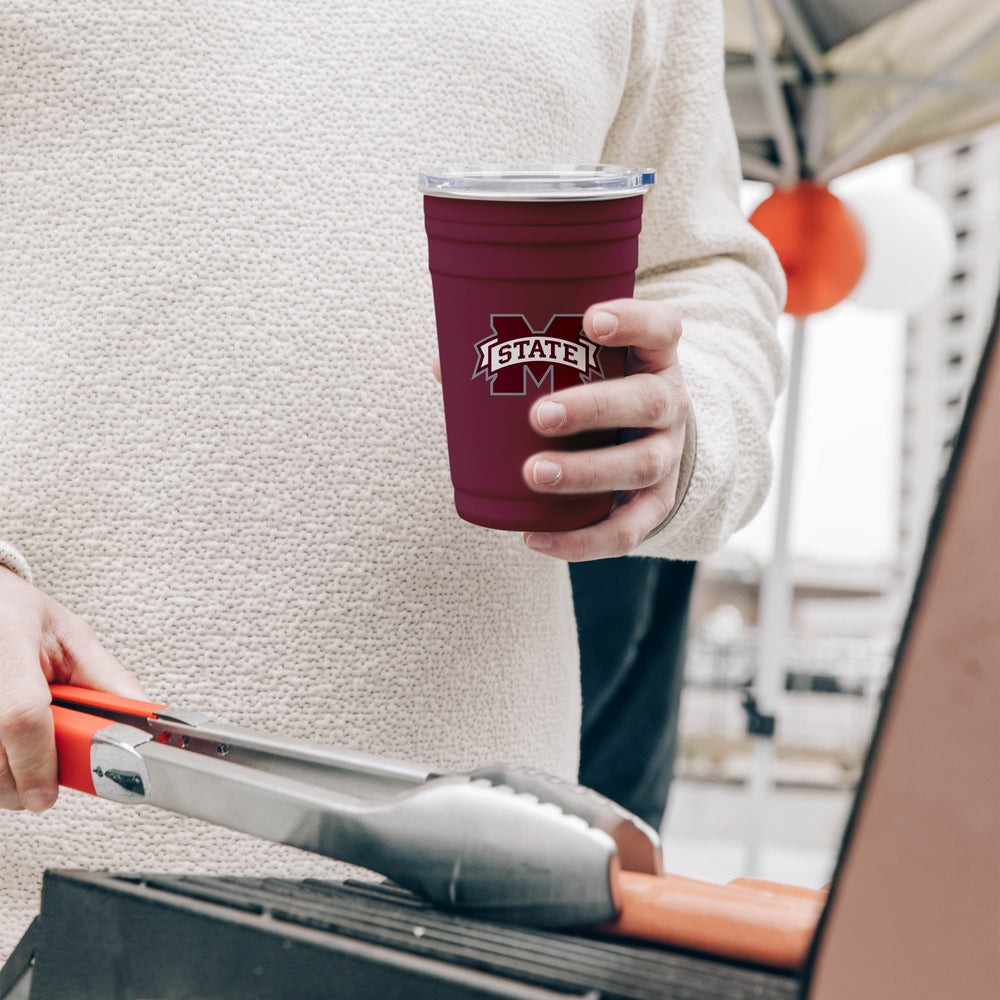 Sipping your drink is an easy feat with this Stainless 22oz Cup! With a capacity of up to 22oz and made of premium stainless steel, you can fill it up with whatever hot or cold refreshment you choose, and enjoy your drink of choice for hours to come. Proudly display your team for all to see while sipping smooth. Featuring a silicone gasket liner to prevent splashes, the lid is easy to take a part to toss in the dishwasher after use. Fits into most cupholders.