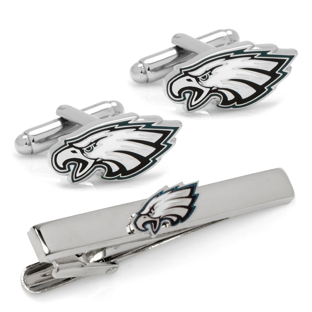 The perfect gift for the dapper football fan, this gift set combines officially licensed Philadelphia Eagles cufflinks and a matching tie clip. Great for the businessman whose everyday attire consists of a suit and tie, help him represent his team with elegant accessories that won't damper his look. Elevate your style with the Philadelphia Eagles Cufflinks and Tie Clip Gift Set. Officially licensed by the NFL.