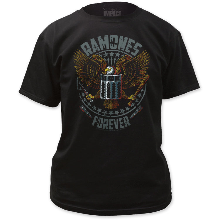 Check out this cool new Ramones tee. This black tee features the band's logo on front with distressed "Forever" below.