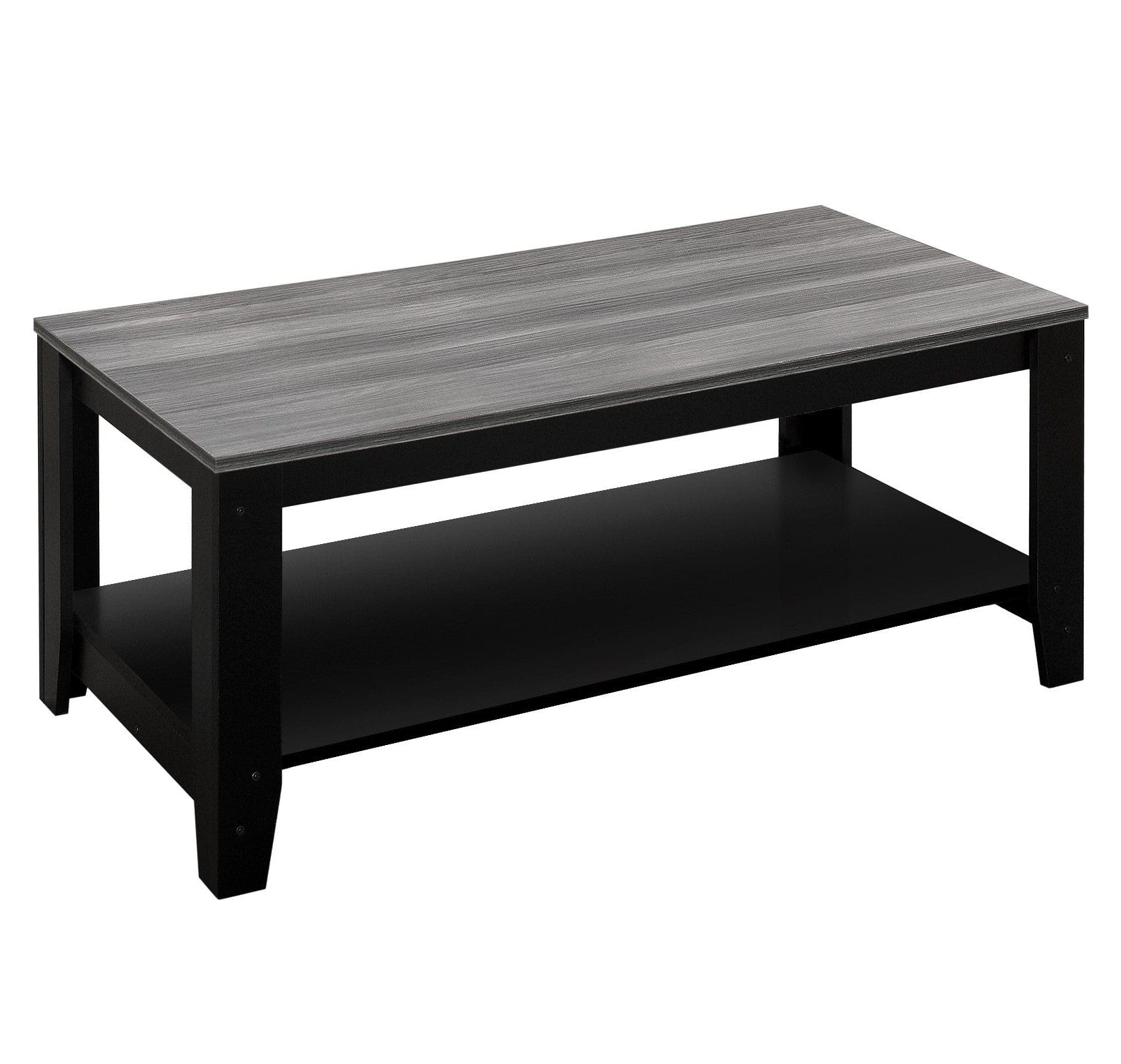 This coffee table set is just what you need to get your living room or lounge area set up and ready. Offering a nice color combination, the top of this manufactured wood table is gray, while the base compliments it nicely in black. Includes a single shelf for handy storage or display space. This rectangular table is an classic yet updated way to accent your room. It has a fresh design that will definitely breathe some fresh air into your interior. This coffee table is the sturdy, reliable and stylish answer to your living room needs. 17-inch H x 42-inch W x 20.5-inch D