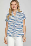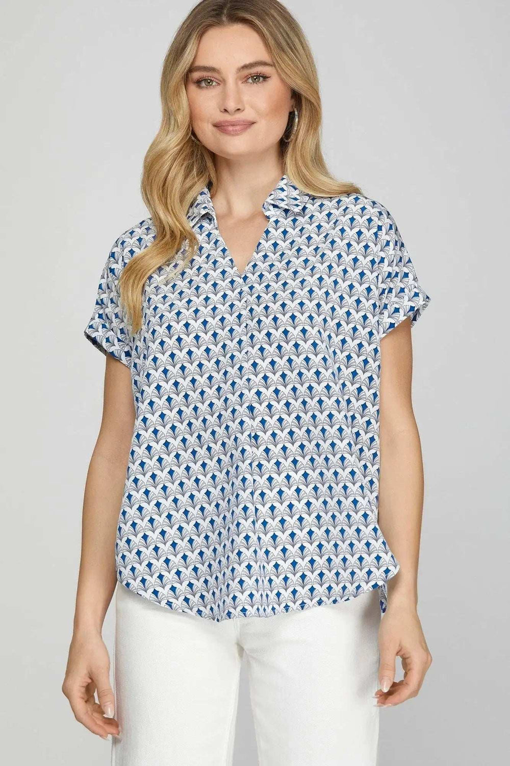 The Printed Johnny Collar Short Sleeve Blouse offers a stylish and versatile option for your wardrobe. With a unique printed design, a sophisticated Johnny collar, and chic short sleeves, this blouse adds a touch of elegance to any outfit. Perfect for both casual and semi-formal occasions, this blouse is a fashionable choice for a polished and put-together look. Elevate your style with this eye-catching and trendy piece.