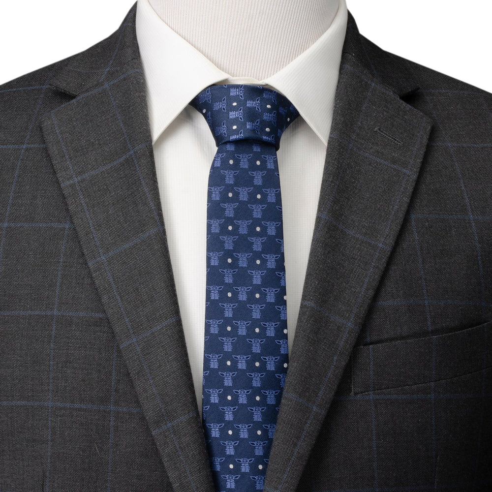 Our Grogu Navy Blue Men's Tie features rows of light blue Grogu motifs, better known as The Child or Baby Yoda, stitched on a blue silk base. White pin dots compliment and brighten the design of the tie, creating a dot pattern. Experience the Way of the Mandalore with our expertly crafted Silk Blend tie. It's built to withstand the challenges of bounty hunting across the galaxy, infused with the honor of Mandalorian creed, and ready to accompany you on interstellar hunts. Pairs well with our Grogu Cut Out Tie Bar. Officially licensed by LucasFilm LTD.