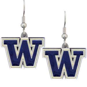 Every woman has her favorite pair of earrings. Why not make our most popular earrings every woman’s favorite earrings. Our officially licensed Washington Huskies zinc dangle earrings are beautifully detailed with hand colored enamel team logos that define these classic dangle earrings. They add the perfect touch of spirit to any game day or every day outfit. The earrings have a high polish nickel free chrome finish and hypoallergenic fishhook posts.
