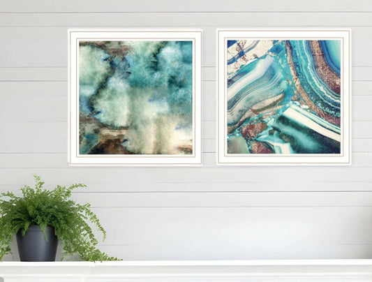 Conjunto de dos impresiones de arte de pared enmarcadas en blanco Geode Reef Pleasure 1