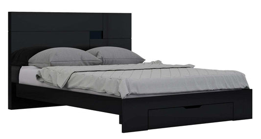 Marco de cama tamaño king de madera blanca con cajón de almacenamiento