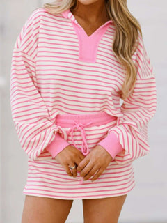 Striped Top and Skirt Set with Drawstring