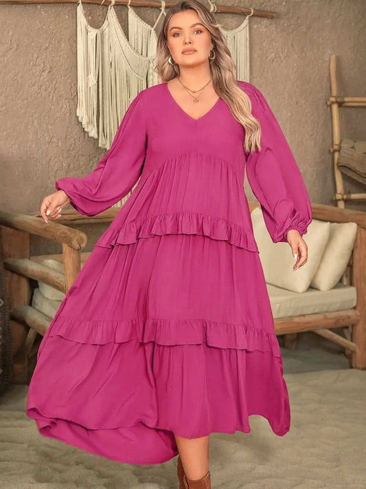 Vestido de manga larga con escote en V y volantes de talla grande