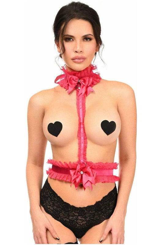 Arnés corporal con doble tirante de encaje fucsia/fucsia de la colección Kitten de Daisy Corsets