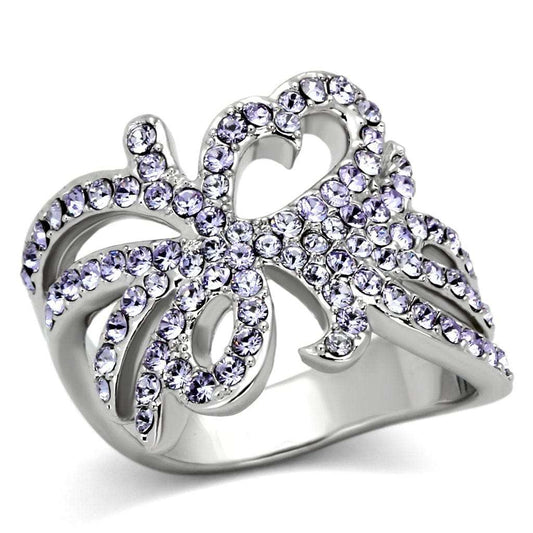 TK869 - High polished (no plating) Stainless Steel Ring with Top Grade Crystal in Light Sapphire