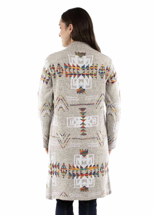 Hermoso cárdigan abierto por delante en colores claros y vibrantes. Este cálido cárdigan largo hasta la rodilla está confeccionado con un hilo acrílico suave. Importado. Lavable a mano.- $95.00 USD
