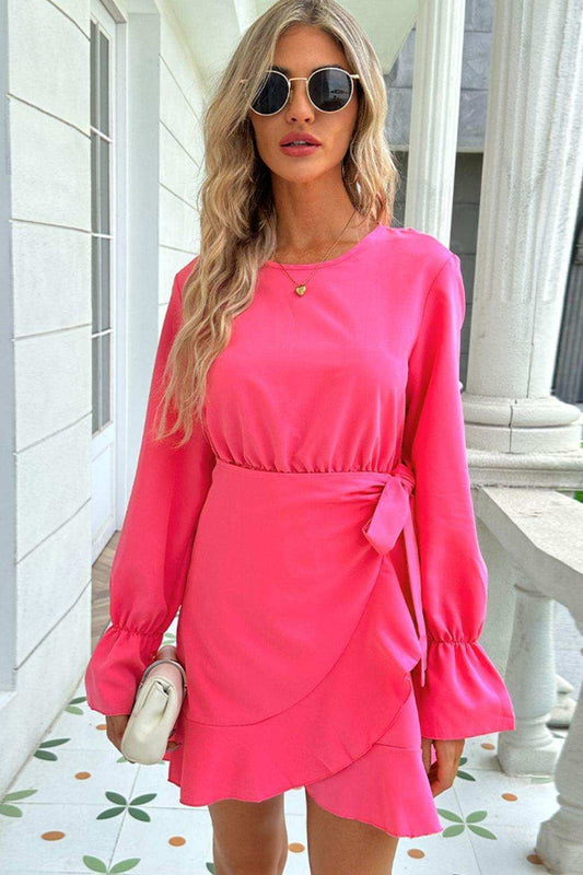 Tipo de patrón: Sólido Estilo: elegante Características: Lazo, Volante Escote: Cuello redondo Longitud: Mini Largo de manga: Mangas largas Tipo de manga: Mangas con volantes Forma del dobladillo: línea A Pura: no Cuerpo: Sin forro Composición del material: 100% poliéster. Estiramiento: Sin estiramiento Instrucciones...- $26.94 USD