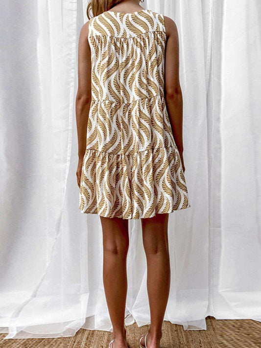 Tipo de patrón: Estampado Estilo: Casual Características: Estilo básico Escote: escote en pico Longitud: Mini Largo de manga: Sin mangas Tipo de manga: Sin mangas Forma del dobladillo: línea A Pura: no Cuerpo: Sin forro Composición del material: 100% poliéster. Estiramiento: Sin estiramiento Instrucciones...- $31.94 USD