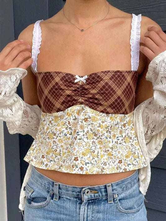 Lace Detail Floral Sweetheart Neck Cami