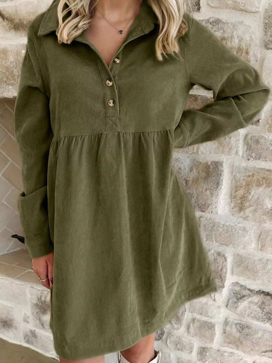 Casual Corduroy Long Sleeve Top and Drawstring Shorts Set