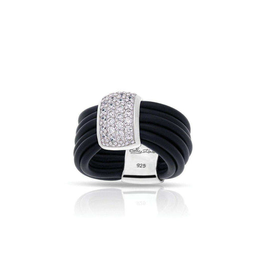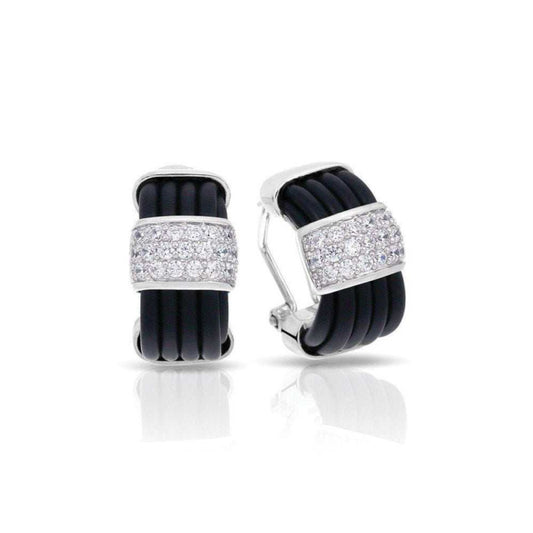 Swirls of pave-set sterling silver adorn rich, hand-set Italian enamel in the Andante Collection by Belle Étoile. Experience the sensuous and serene mood of the Andante Collection. Description: Hand-strung black Italian rubber with white stones set into rhodium-plated, nickel allergy-free, 925 sterling silver. VE-19001-01 Dimensions:...- $225.00 USD