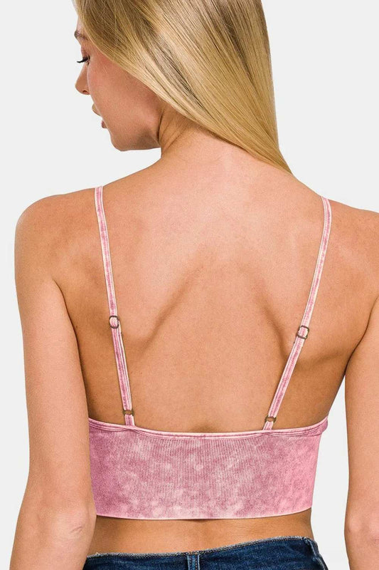 Zenana Washed Ribbed Seamless Double Strap Brami
