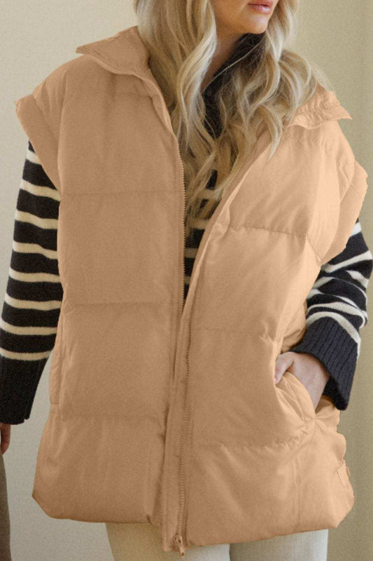 Abrigo de invierno de manga larga con cuello alto y cremallera
