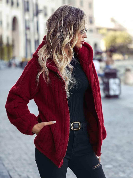 Chaqueta de felpa de manga larga con cuello alto y cremallera