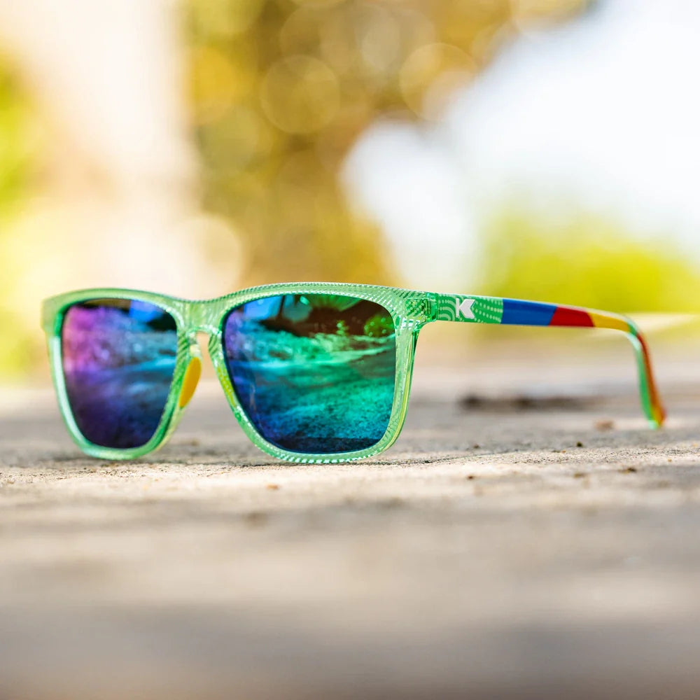 The Limited Edition 20th Anniversary Fast Lanes Sport sunglasses are here—built on two decades of Knockaround style, adventure, and everyday cool. Featuring our iconic colorful camo print on the arms and a subtle lawnmower lens etch paying tribute to where it all began, this pair is equal parts history and celebration.
