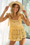 This tiered top features a delicate floral lace design with shoulder ribbon ties for a romantic and feminine look. The tiered layers add dimension and texture to the top, creating a stylish and elegant silhouette. The shoulder ribbon ties provide a sweet and charming detail that adds a playful touch to the overall design. Made with high-quality lace fabric, this top offers both beauty and comfort for any special occasion. Elevate your outfit with this enchanting top that effortlessly combines floral elegance with whimsical ribbon accents.