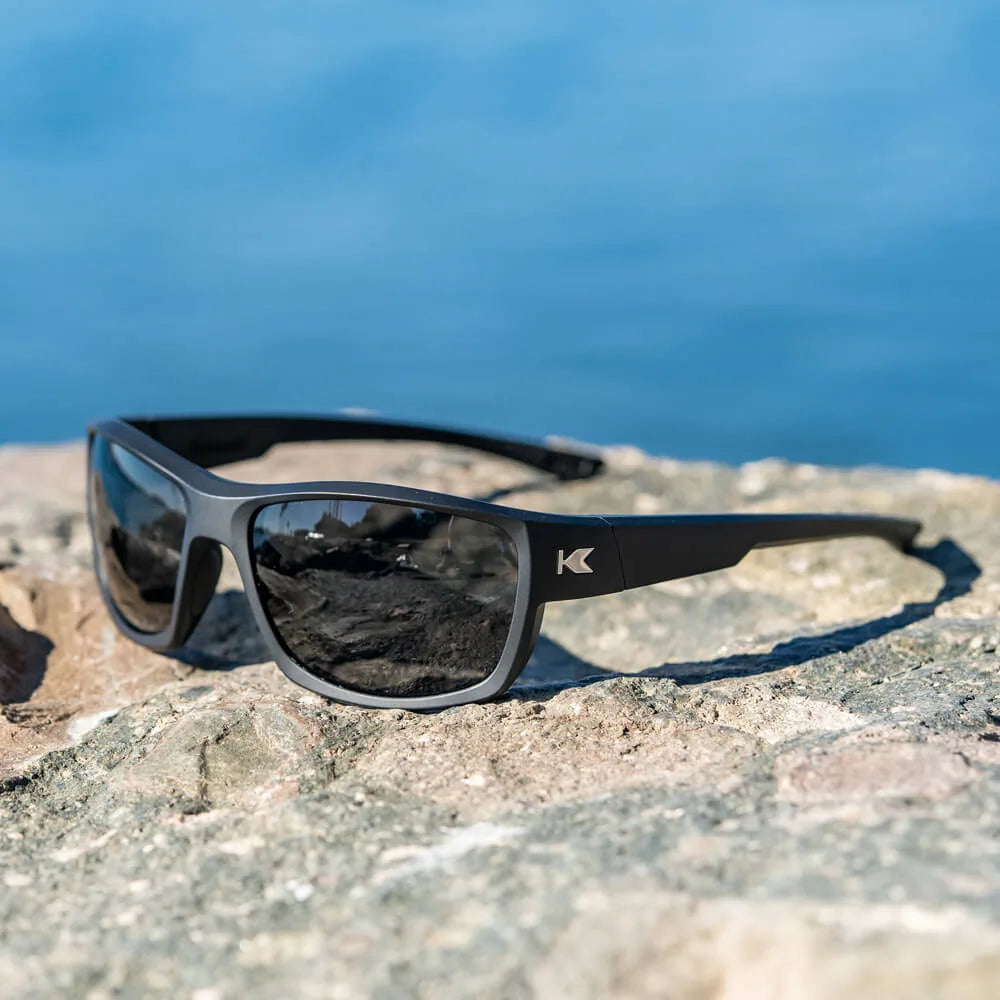 The all-weather package of our Blackout High Stakes is worthy of praise from fashionistas and nature enthusiasts alike. Matte black frames provide a look that’ll never go out of style, while the almost-secret rubberized ear and nose grips blend in seamlessly to reduce slip, slide, and bounce. Polarized smoke lenses allow you to remain mysterious and boost intrigue, while anti-saltwater coatings are essential for when the vibe turns rowdy. Keep up with every tide, ripple, and rush that comes your way!