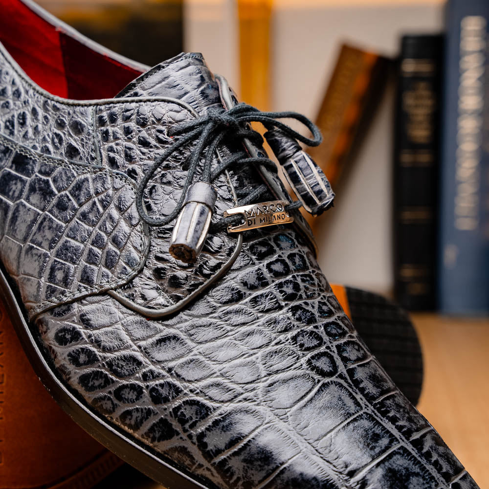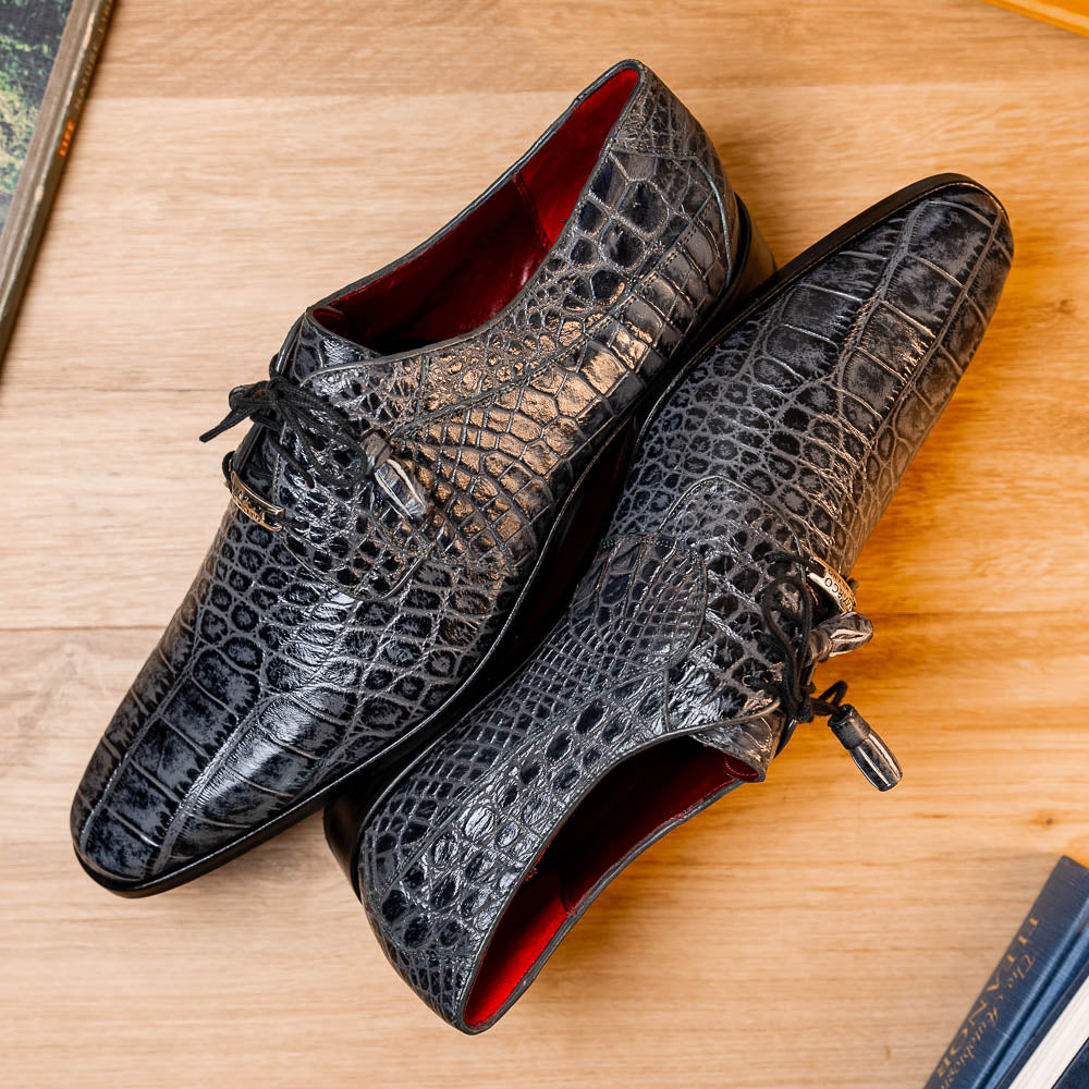 The FITIPALDI embodies luxury and tradition. These genuine alligator derby shoes, with their classic and elegant design, are the perfect accompaniment to any special occasion.