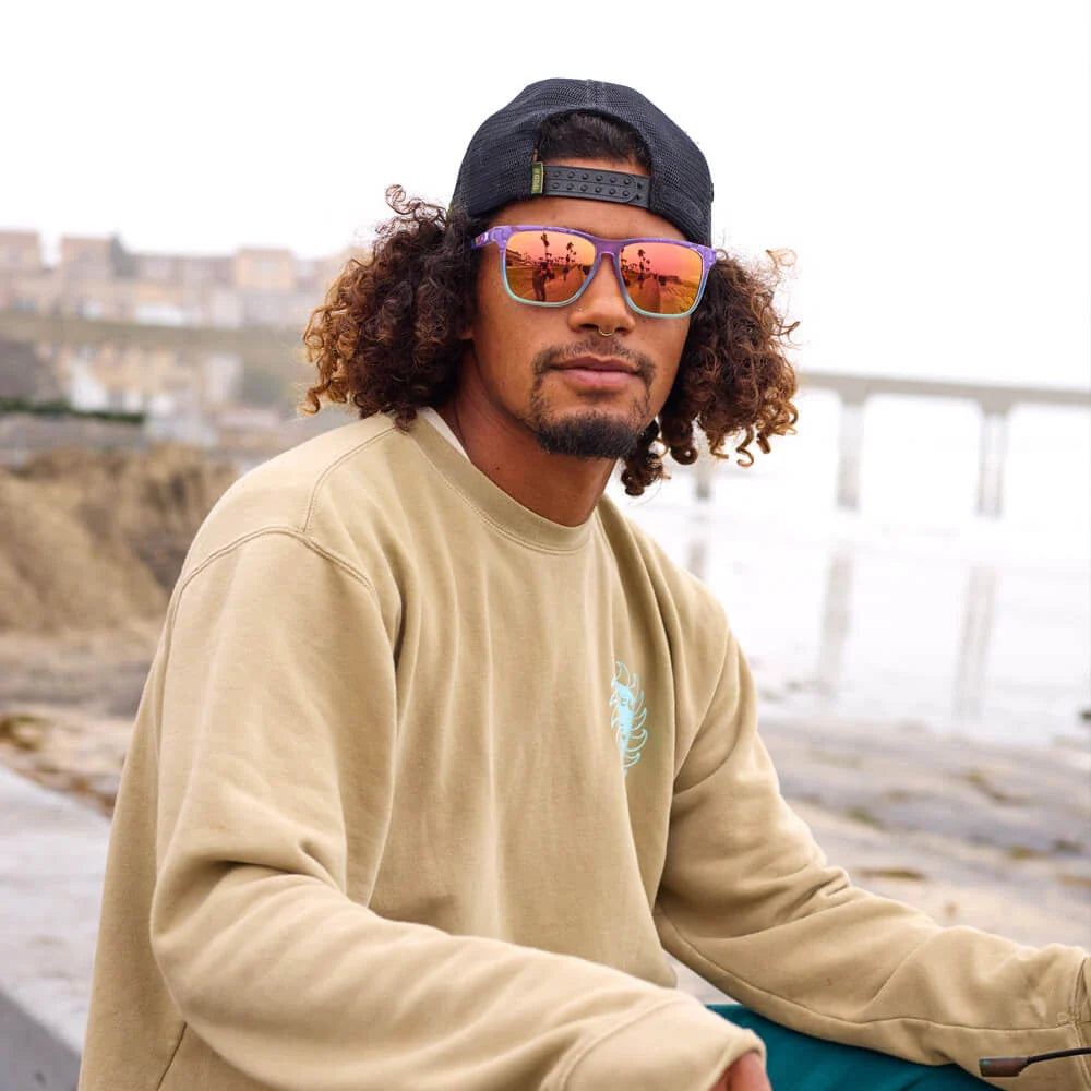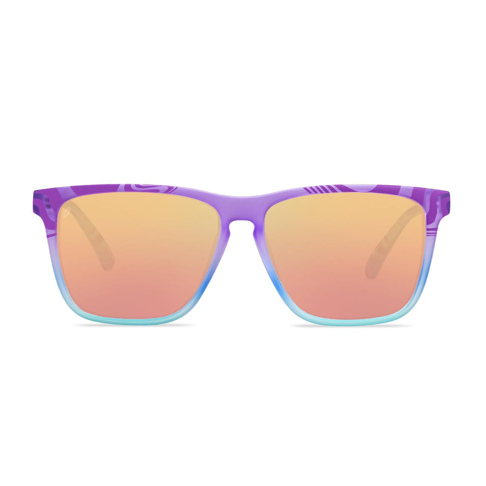 Step into a technicolor daydream with the Trippy Bears Fast Lanes! These shades swirl together frosted light blue and purple in a wavy pattern that’s pure visual bliss. Featuring the Grateful Dead’s iconic Dancing Bear heads along the arms, they’re a festival-ready trip down memory lane. Whether you’re chasing the music or just soaking up the sun, these shades will have you feeling far-out and fabulous wherever the groove takes you.