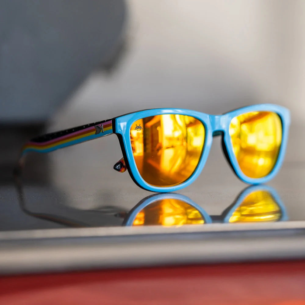 The legendary High Score design that dominated our Fort Knocks frame is back for a victory lap! This 20th Anniversary re-release brings the same retro 8-bit inspired pattern and arcade machine arms to our Premiums frame. Featuring pixelated details that celebrate the golden age of gaming, these shades are perfect for anyone who knows that the best games—and the best styles—are timeless.