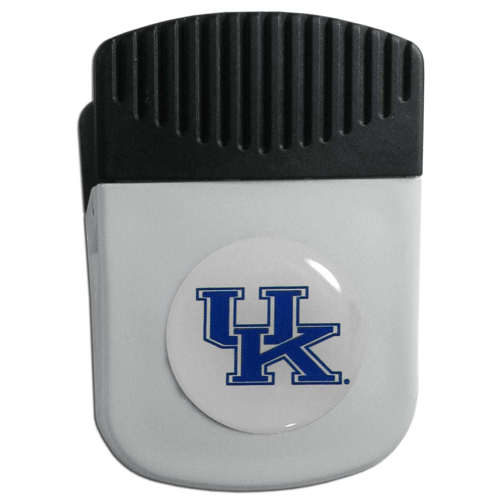 Use this attractive clip magnet to hold memos, photos or appointment cards on the fridge or take it down keep use it to clip bags shut. The magnet features a domed Kentucky Wildcats logo.