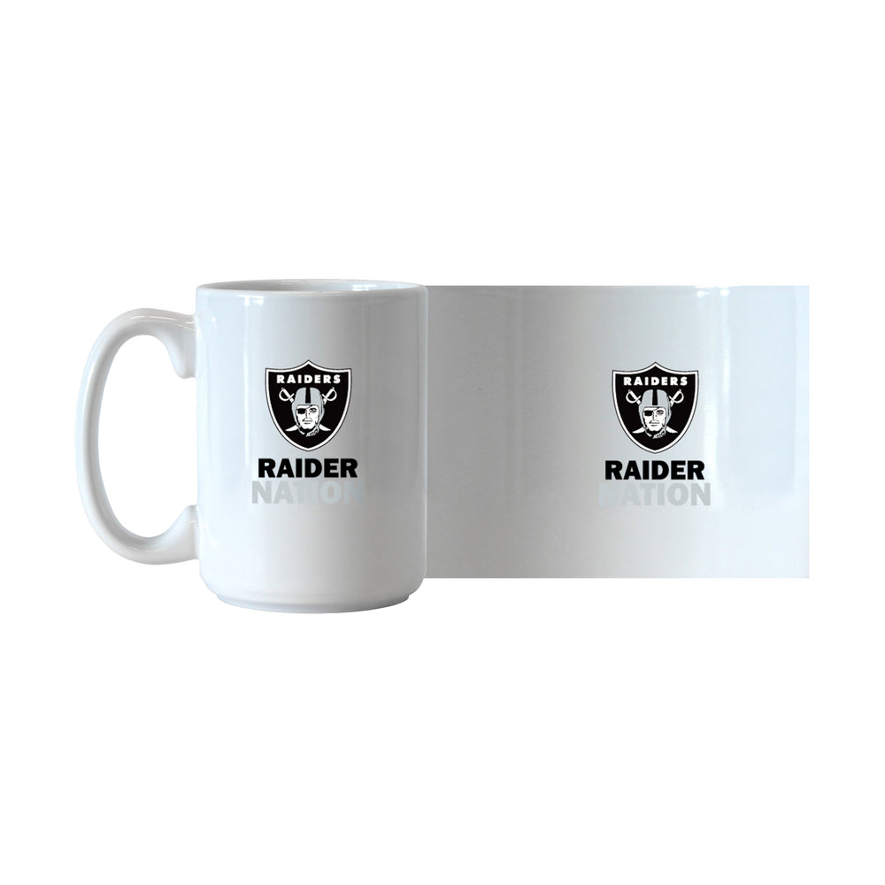 This 15 oz. white ceramic mug is perfect for coffee and other hot or cold beverages. It features a printed design featuring your team's colors and logos.