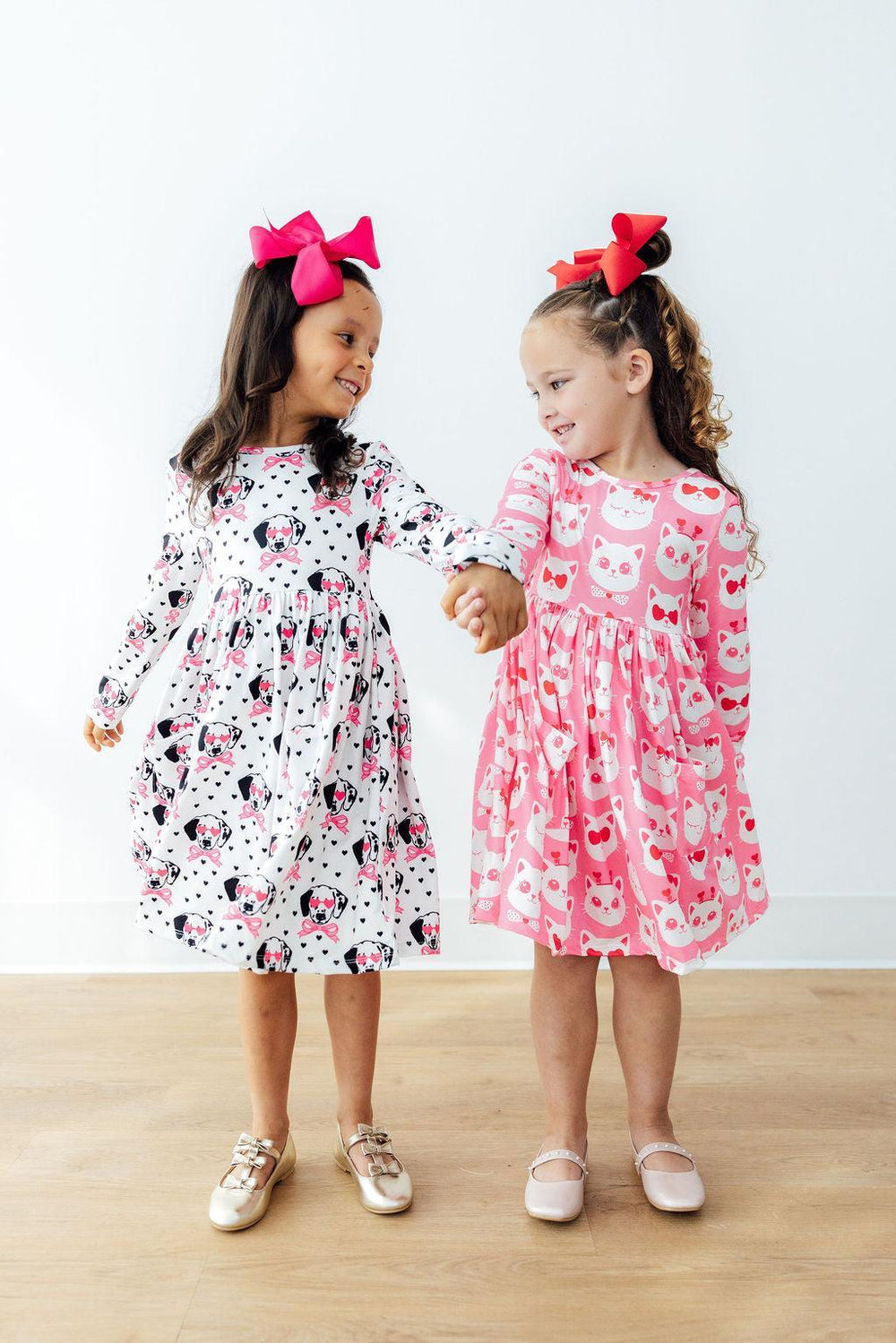 Our customer-favorite Long Sleeve Twirl Dress is the perfect mix of comfort, style, and twirl-worthy fun. Featuring a full-circle skirt, soft stretch fabric, and a sweet scoop back neckline, it’s made for everything from school days to special occasions.
