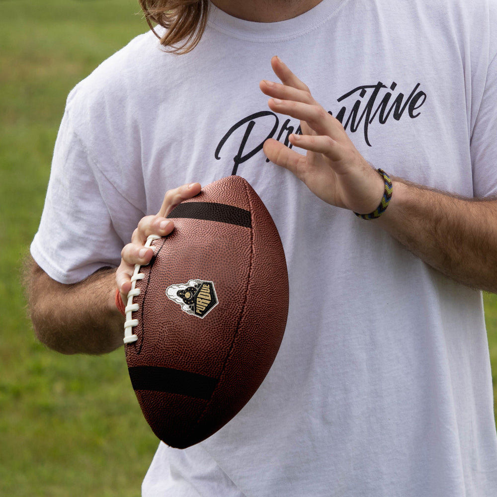This officially licensed full-size football is perfect for a serious football game among friends. It's also perfect for tossing around at your next tailgate, office party or family reunion. Synthetic sewn laces and high-quality composite leather with pebble grain texture make it easy to grip and throw with accuracy. The design features large debossed team wordmark and primary team logo with primary team color stripes on the ends. It can also be used as a keepsake, souvenir or gift for your favorite sports fan.